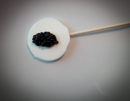 Nitro sour yogurt lollipop with Iranian caviar
