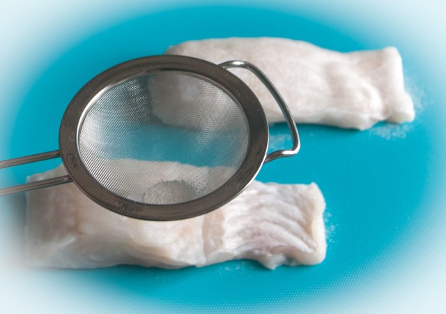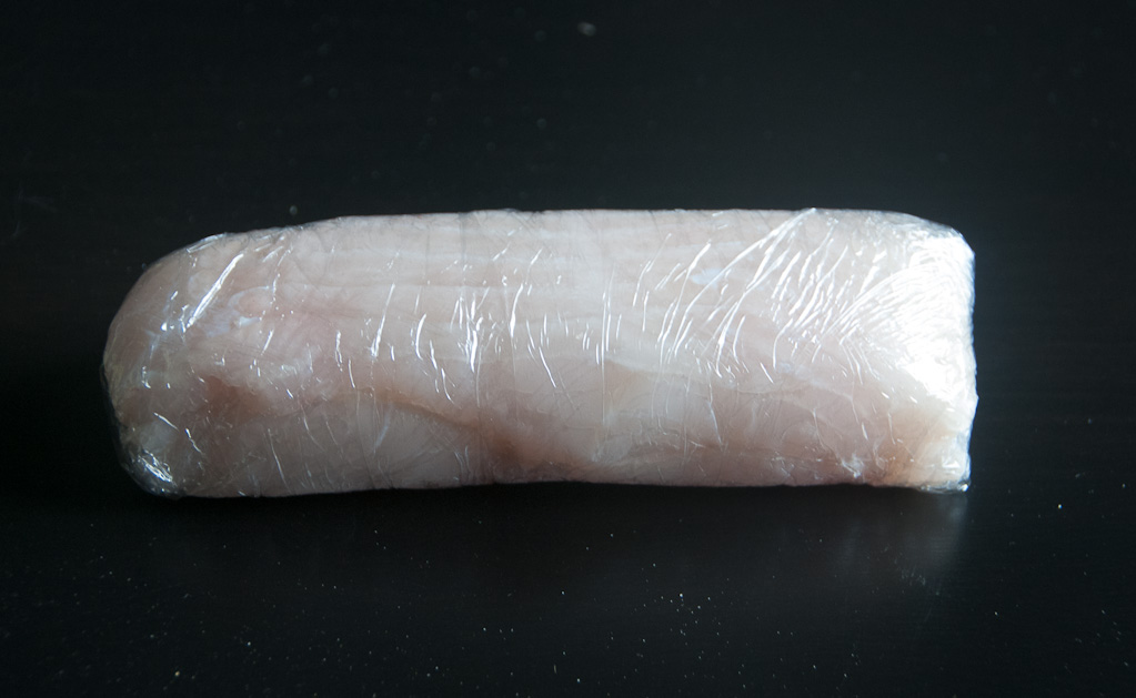 I continued the forming by wrapping the fish filets in cling film (plastic/glad wrap) pretty tight.