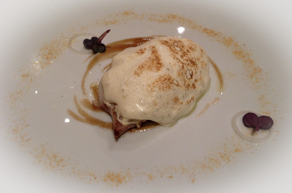 After this we got a dish of King Prawns with roveja and a cream of almonds.