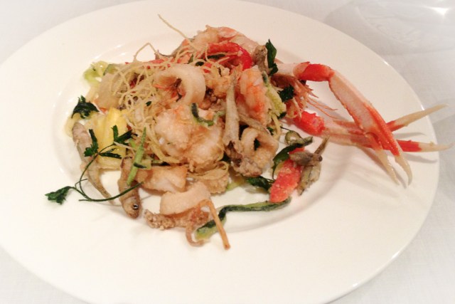 Since we did not have a printed menu (and the menu was not available in advance since the market availability determines the dishes for the menu on a daily basis) we were now discussing around the table that we wanted one but only one more main course. This was exactly what we got and this was a large bowl of delicious fried fish and seafood. It was a little bit on the salty side if you should remark on anything regarding this dish.