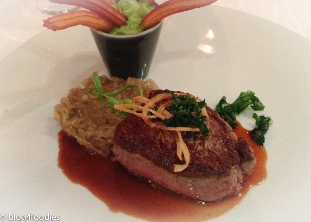 The two alternatives for the main dish were either a beef or a fish dish. I chose the beef, which were served together with French fries and a variant of a béarnaise sauce: