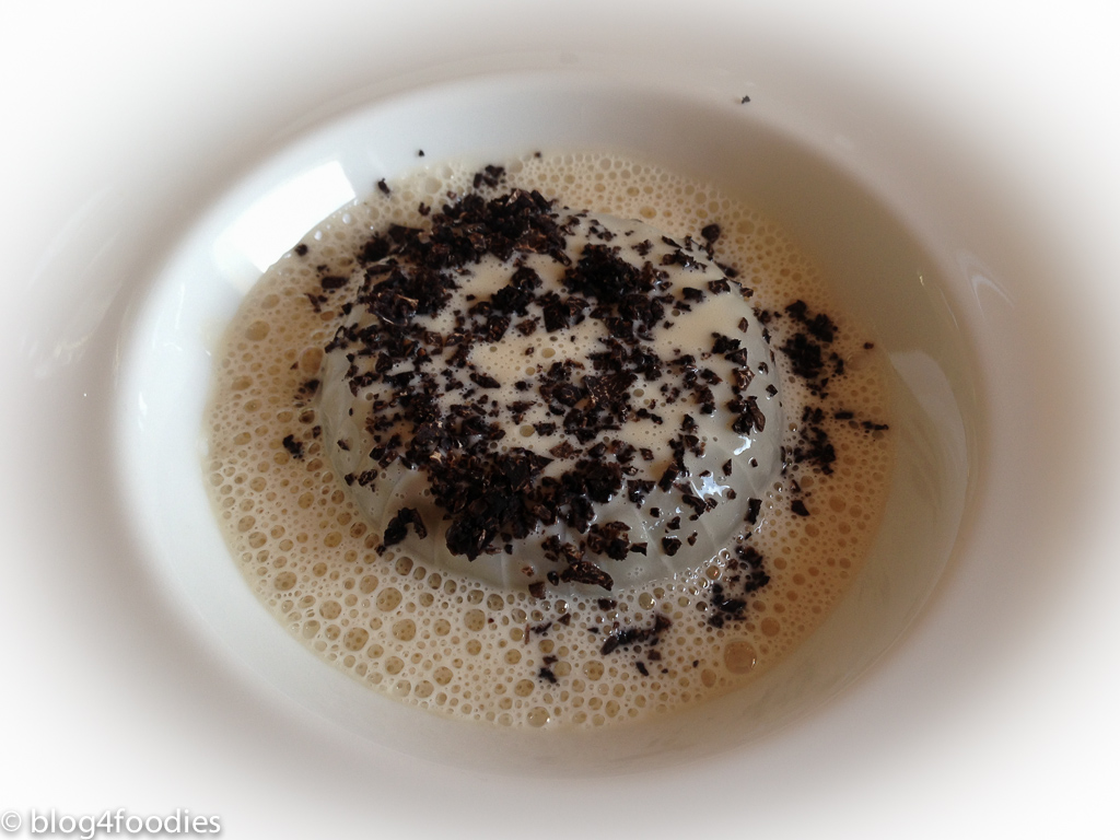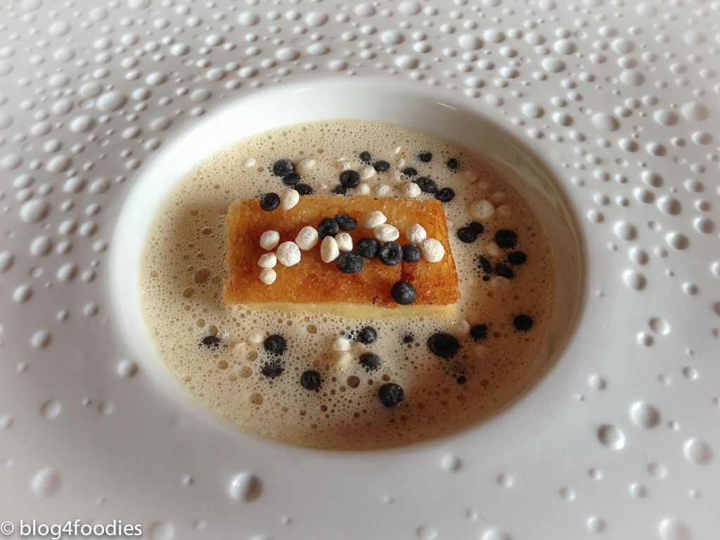 - Finely sliced Jerusalem artichoke, truffle and a lightly buttered sauce perfumed with cloves (my personal favourite for this serving):