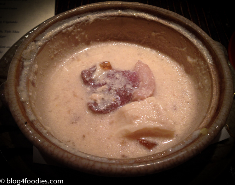 Japanese Duck, Duck dumplings, tofu, tofu skin, Chinese cabbage and broth Ager. Unfortunately I started eating this dish before taking the photo making the dish look less desirably. That said, this dish might also be the least desired during this dinner.