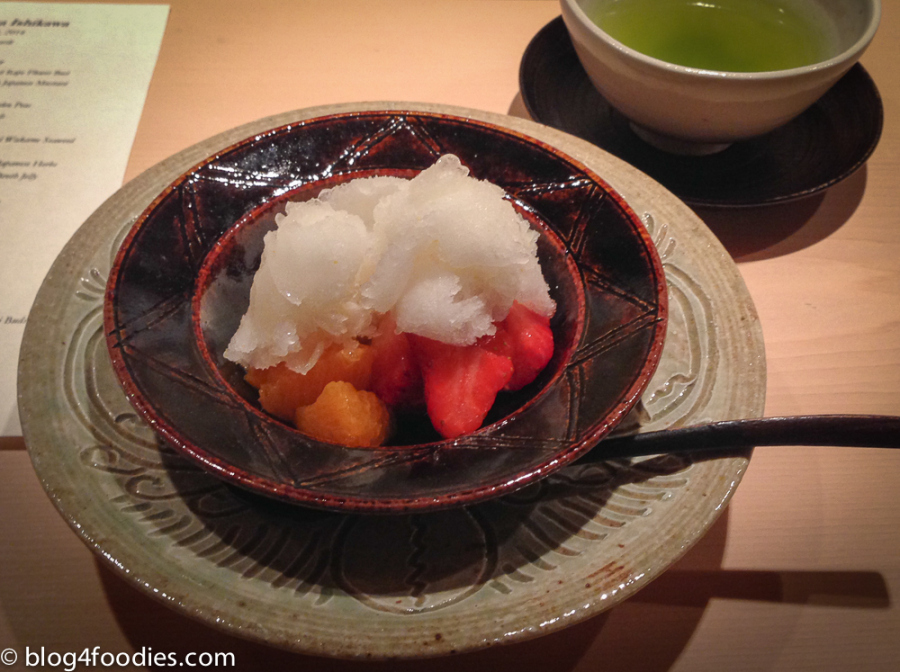 In summary: This was my first kaiseki dinner and I did not only enjoy all of the food served but also the warm welcoming service that seemed genuine authentic. That and the fact that we also could interact with Hideki Ishikawa himself during the dinner (which was in sharp contrast in comparison to the lunch we had earlier that day on Sushi Mizutani) contributed to the overall good dinner experience. Also, I had not tasted any sake I liked before this dinner so that was also an interesting experience (usually I am a 99% wine person…).  In all: highly recommended!