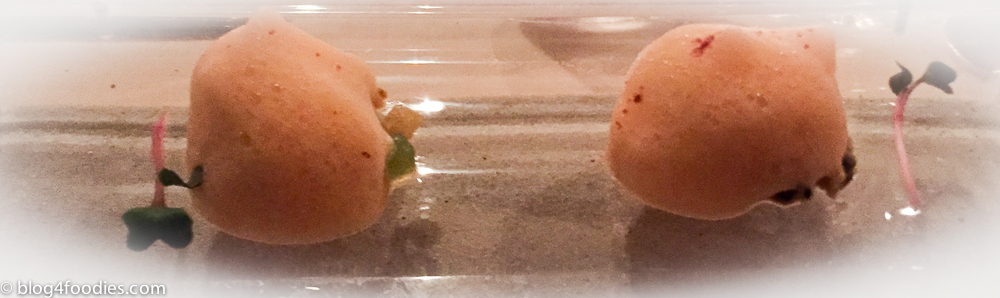 At the start of the dinner we were offered butter, some excellent olive oil from Lazio and bread of four different kinds (we liked the butter-bread the best). But foremost we were offered to select salt from a wide variety of places, for instance from Peru, Iran, Hawaii, Norway and Australia (I do not remember all salts), and this was very interesting to sample.