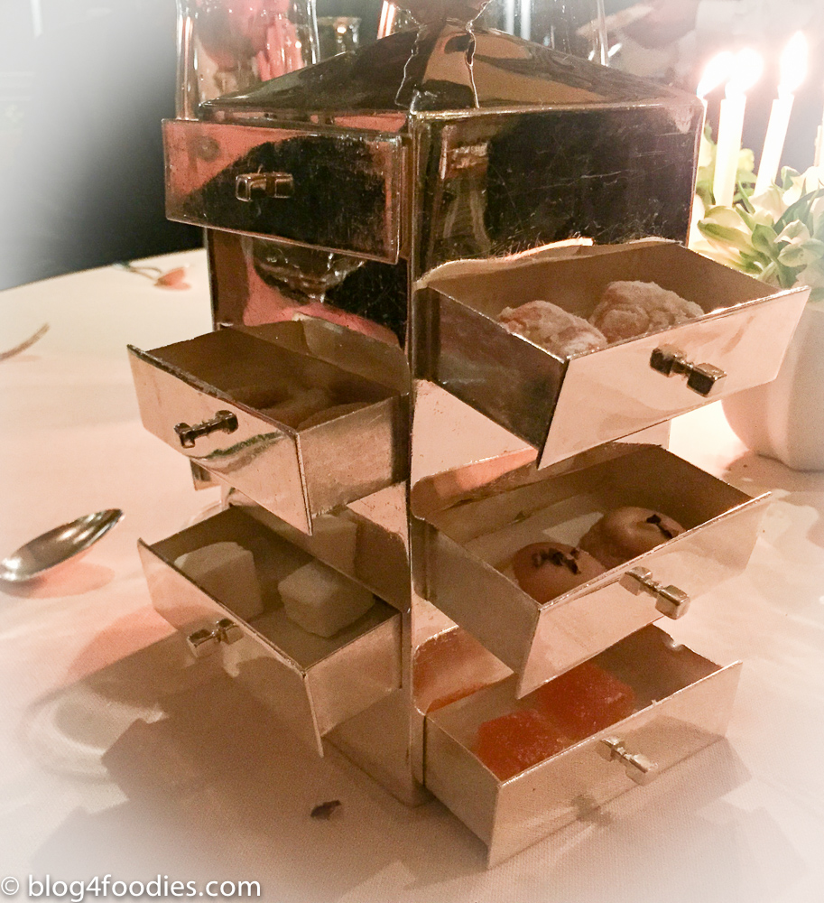 The dinner ended with a bit of homemade chocolate to the coffee/tea (besides all the remaining petits fours that was put on the table just before the first dessert…).