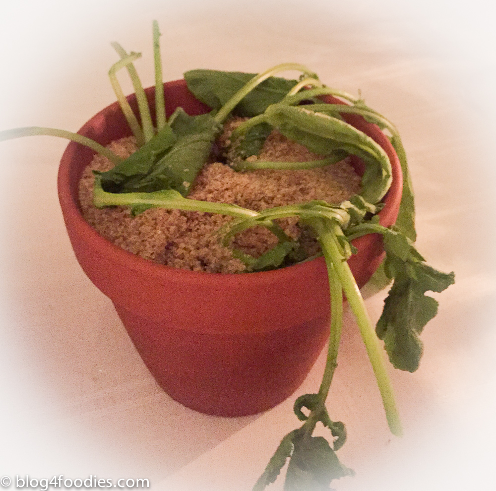 For an amusement were you basically only shall have one small radish each from the pot, it is pretty much work though the dish contains radishes, parsley, chives, tarragon, chervil, shallots, sheep’s milk yogurt, capers, mayonnaise, food thickener (I used Lambda Carrageenan), wheat flour, malt flour, hazelnut flour, sugar, butter and salt… (recipe).