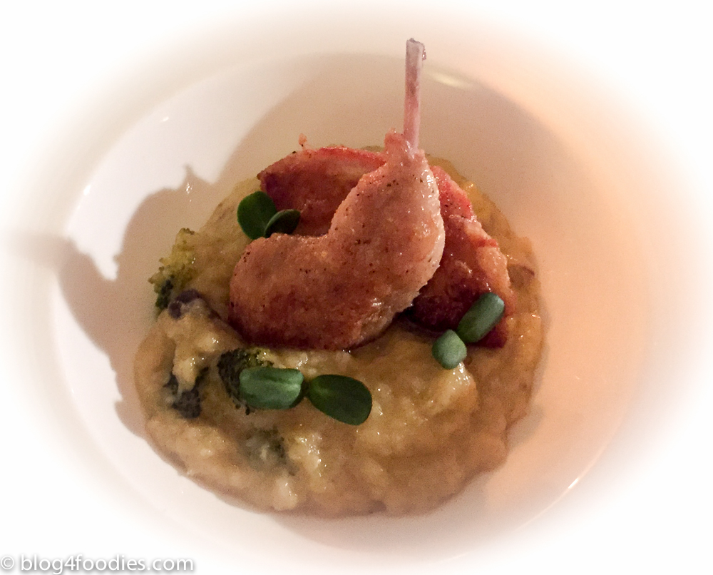 This starter is an impersonation of a dish all of us (attending this New Years Eve dinner) had at Osteria Francescana last fall. It sets a tone with an intense taste of almonds, bits of candied bergamot, capers and coffee. Cold, delicate, original and very good!