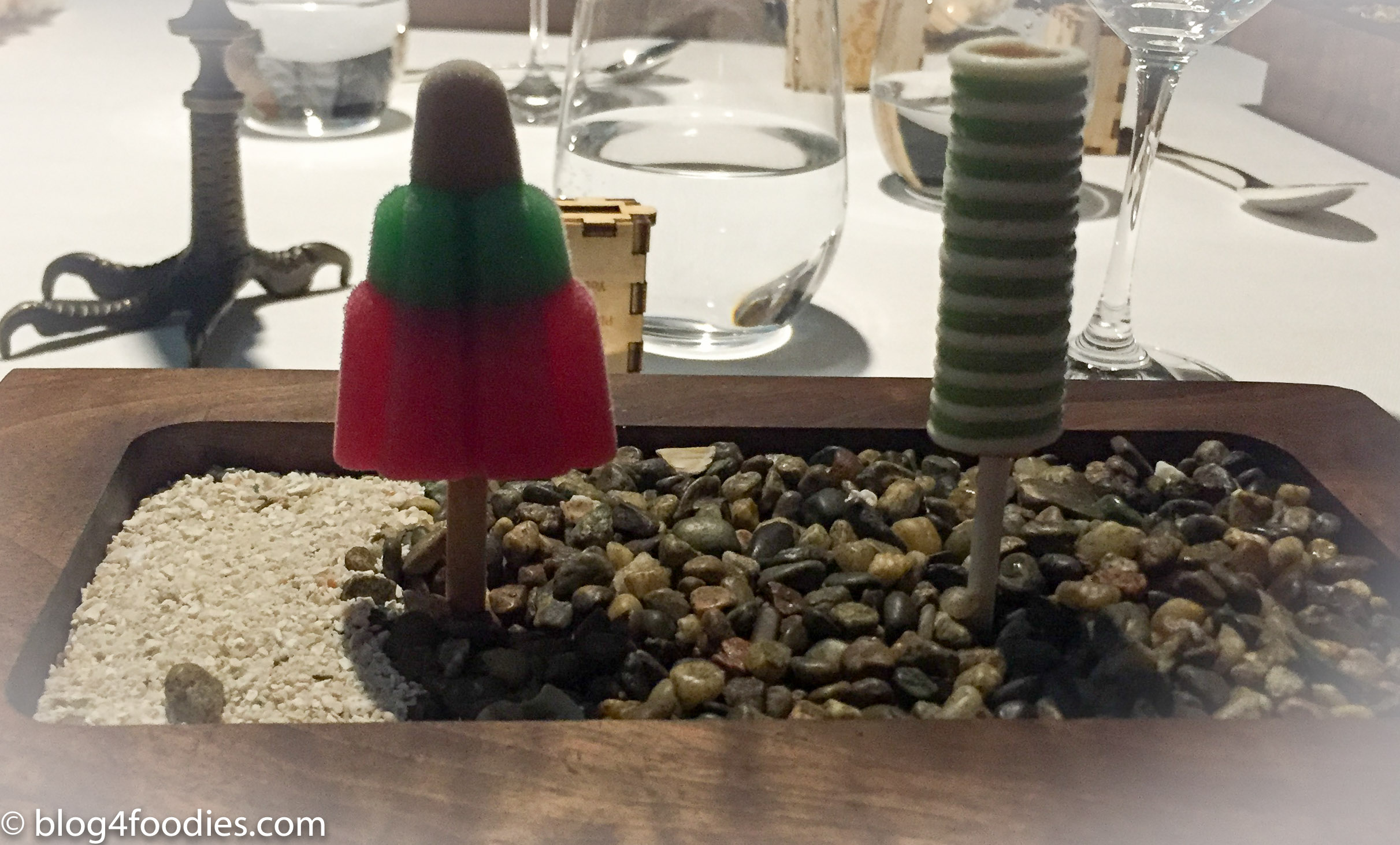 In reality, a sweet shop rolls out and you now get the chance to use your previously given coin, to be able to purchase some candy. This sweet shop is a spectacle in itself and hardly surprising it resulted in a little “collection” of candies. Those sweeties (e.g. white chocolate Queen of Hearts with a raspberry compote filling, aerated chocolate with mandarin jelly, caramel with edible wrapper and nougat with shortbread, caramel and chocolate) were put in a little bag and I let them remain there (for my breakfast…) when it now was about 2:00 AM and it was time to end the Fat Duck journey.