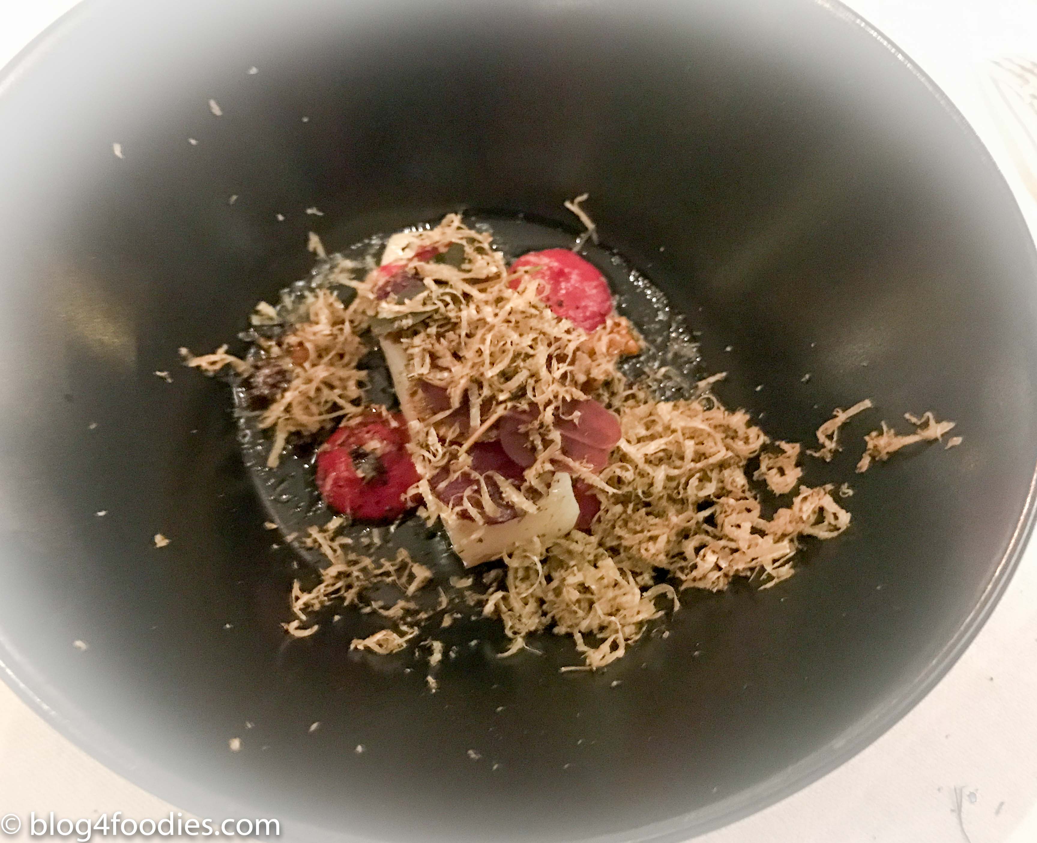 Pike-perch with beetroots from Solmarka Farm, elder capers, browned butter and truffle:
