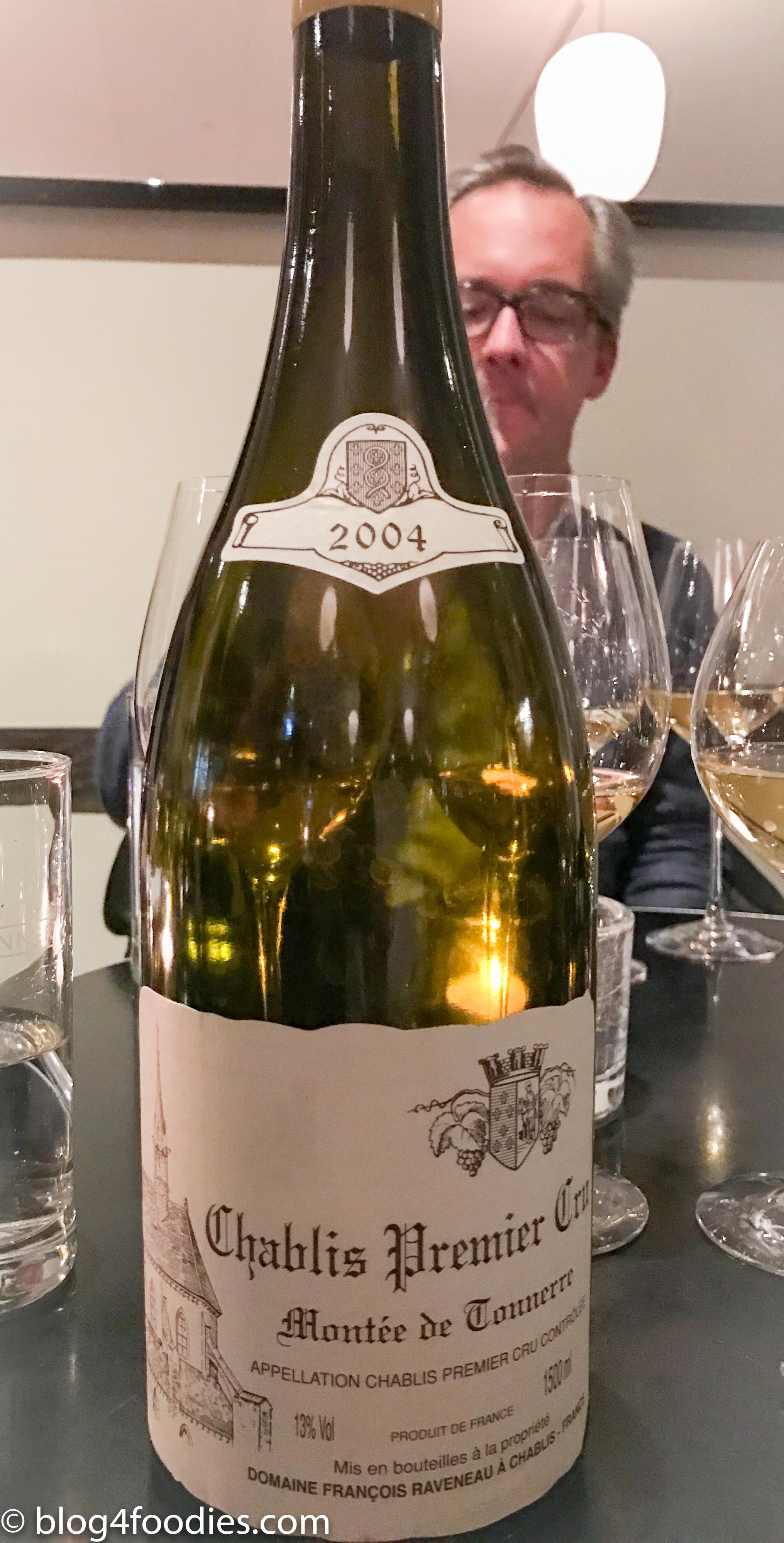 After an hour or so with the champagnes, we started tasting the 2004 François Raveneau Chablis 1er Cru Montée de Tonnerre on Magnum (that then had been decanted about one hour).