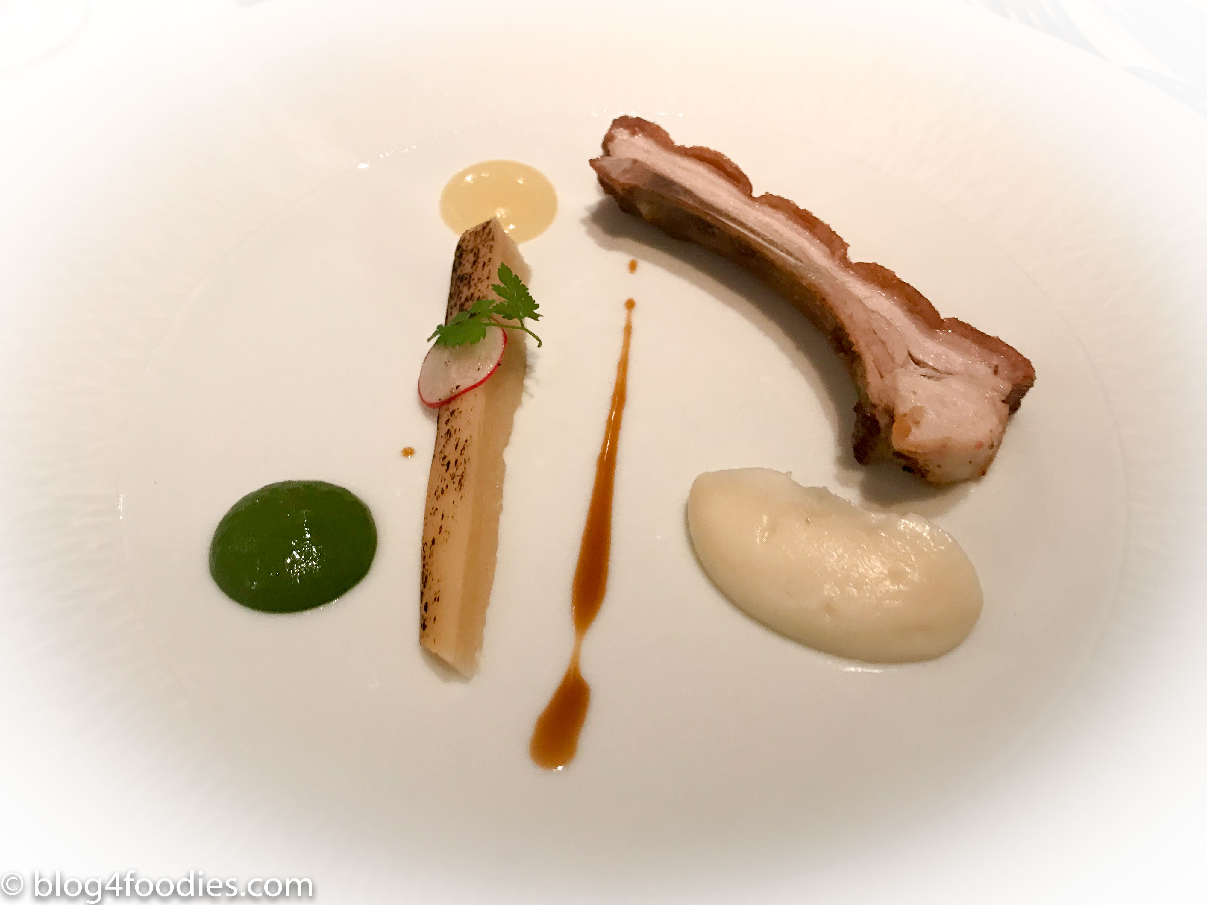 Mora Romagnola’s breed of baby pork cooked on the spit, parsley roots in tinfoil, green sauce and lemos